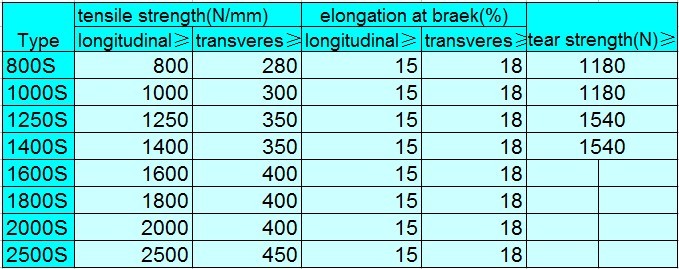 Thông số kỹ thuật: Băng tải cao su chống cháy
